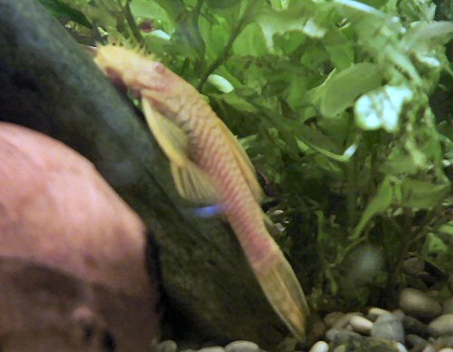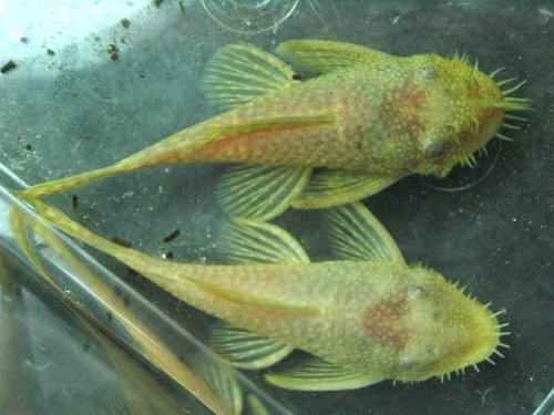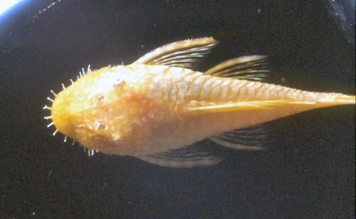 Aşağıdaki Ancistrus sp. "Gold Form" Albino , budur. Yani gold (altın) renginde ki albino cüce vatoz.